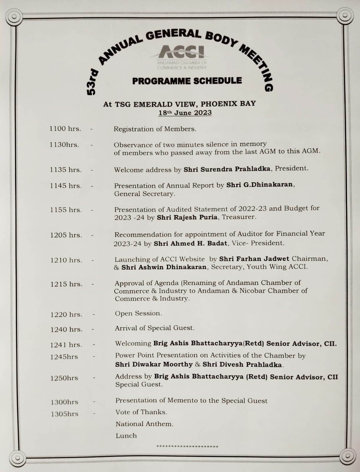 53rd AGM at TSG Emerald View